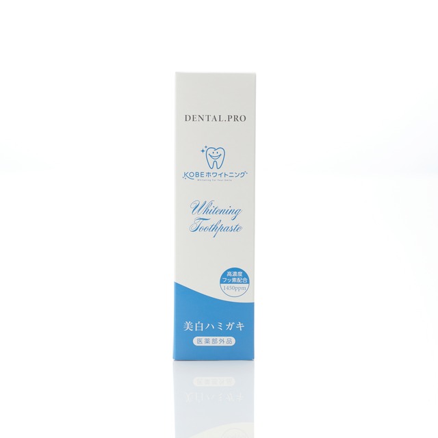 ~KOBEホワイトニングオリジナル 美白歯磨き粉~ 改良に改良を重ねた待望のオールインワン歯磨き粉 歯を傷つけない独自ホワイトニング処方 <p>歯垢やステインなどの汚れを効率よく洗浄する5つの成分を独自配合。 国内最高水準のフッ素(1450ppm)配合 傷ついた歯面を修復(再石灰化)し虫歯になりにくい強い歯に。 甘草由来成分配合で歯ぐきも保護 グリチルリチン酸ジカリウムの抗炎症作用により、歯ぐきが下がる症状の歯周病を防ぎます。 【効果効能】 ◇歯を白くする ◇むし歯の発生及び進行の予防 ◇口臭の防止 ◇歯周炎の予防 ◇歯肉炎の予防 ◇タバコのやに除去 ◇歯石の沈着を防ぐ ◇口中を浄化する ◇口中を爽快にする